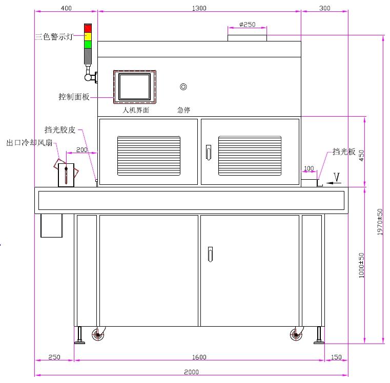 | 1、UV光源:LED2組、UV鹵素?zé)?組 | 2、UV錄燈總長:900mm、弧長800mm |